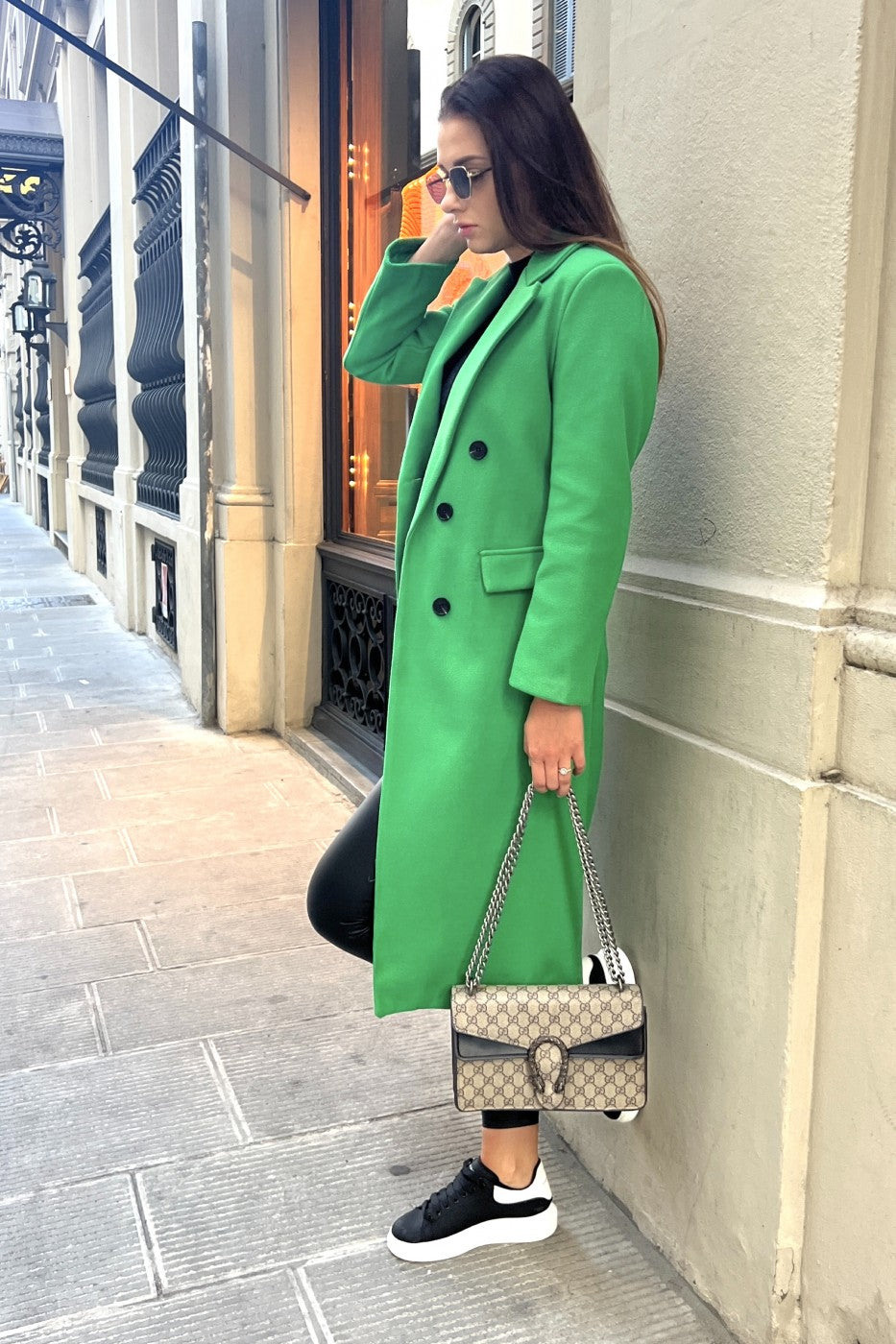 Autumn And Winter Simple Double Row Button Long Sleeve Collared Button Woolen Coat Women